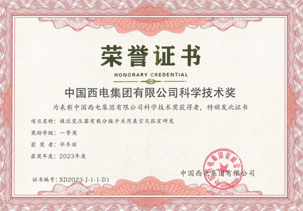 近日,寶光股份《換流變壓器有載分接開關(guān)用真空滅弧室研發(fā)》與《風(fēng)電用40.5 kV/1250 A-31.5 kA真空滅弧室及固封極柱研發(fā)》兩個(gè)技術(shù)創(chuàng)新項(xiàng)目,分別榮獲2023年度中國(guó)西電集團(tuán)科學(xué)技術(shù)獎(jiǎng)“一等獎(jiǎng)”與“二等獎(jiǎng)”!