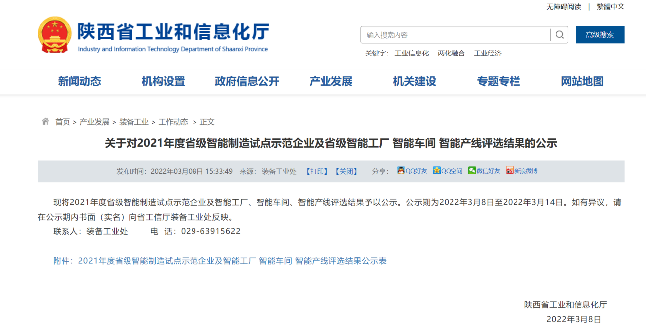 3月14日,陜西省工信廳裝備工業(yè)處發(fā)布2021年度省級(jí)智能制造試點(diǎn)示范企業(yè)及省級(jí)智能工廠(chǎng)名單,寶光股份獲評(píng)“2021年度省級(jí)智能工廠(chǎng)”。